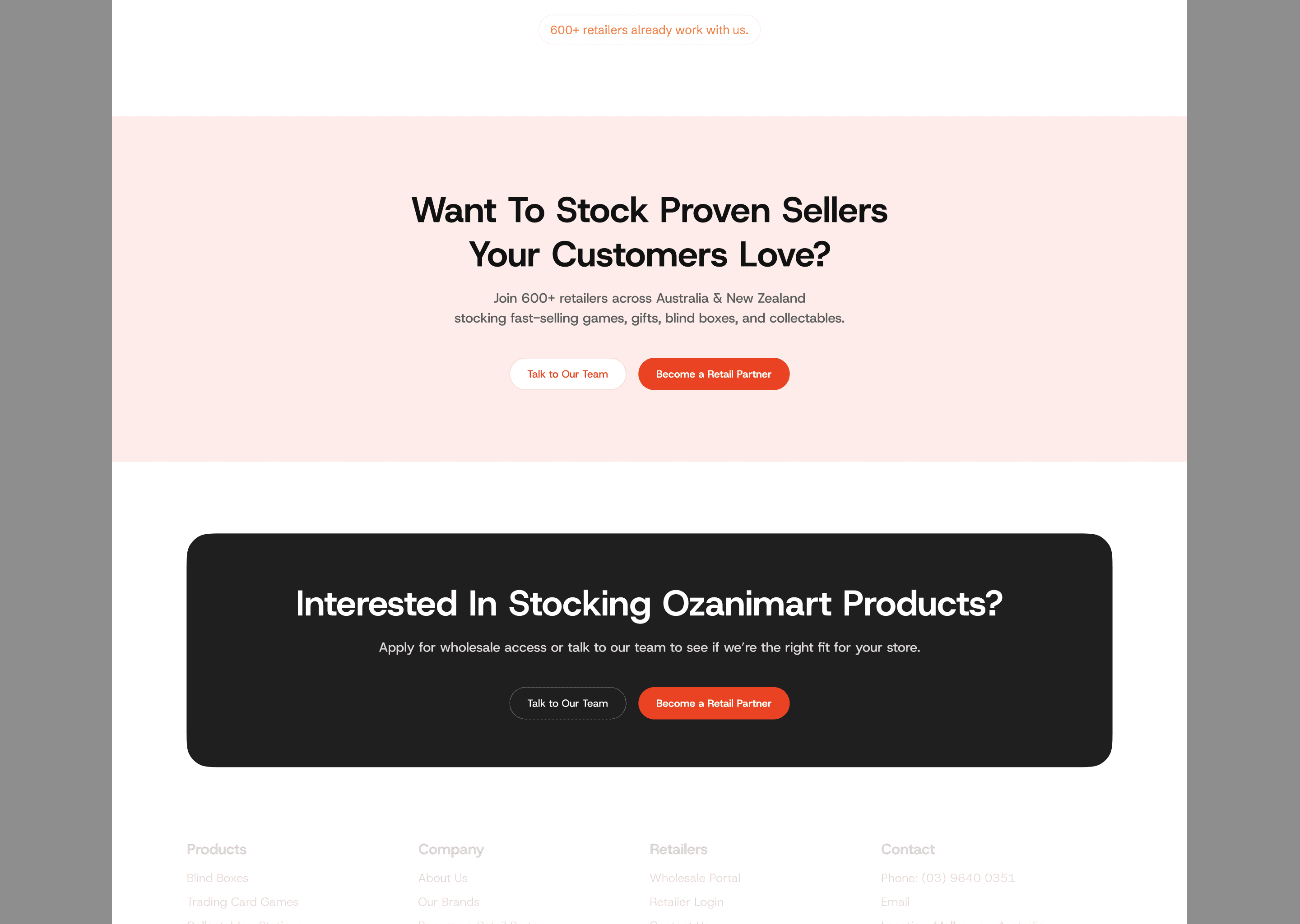 We redesigned the Ozanimart website to strengthen its positioning as a leading wholesale distributor of games, blind boxes, trading card games, and collectables across Australia and New Zealand. The project focused on clarifying B2B messaging, highlighting global brand partnerships, showcasing fast-selling product categories, and improving the conversion flow toward retail partnership applications — resulting in a cleaner, more authoritative, and commercially focused online presence.